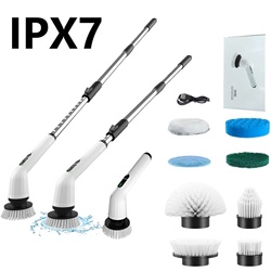 ABS ไร้สาย9 in 1ขยายด้ามจับหมุนขัดทำความสะอาดไฟฟ้าแปรงด้วยกล้องโทรทรรศน์หัวแปรง PP